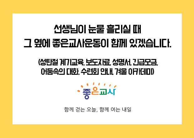 선생님이 눈물 흘리실 때 그 옆에 좋은교사운동이 함께 있겠습니다. (성탄절 계기교육, 보도자료, 성명서, 긴급모금, 어둠속의 …