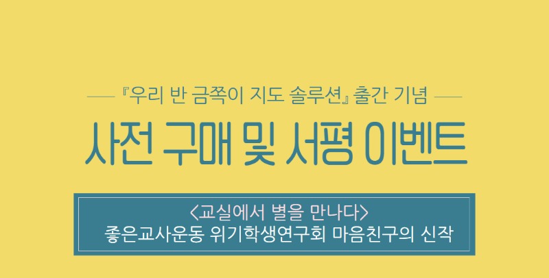 마음처럼 되지 않는 아이들의 돌발 행동 앞에 막막하셨을 선생님을 위해, 긍정적 행동지원(PBS)의 원리를 교실에 그대로 옮겨온 <우리 반 금쪽이 지도 솔루션>을 선보입니다. 출간 기념으로 진행되는 선착순 100명 한정 사전 구매 이벤트 및 서평 이벤트를 통해 특별한 혜택과 함께 가장 먼저 만나보시기 바랍니다.